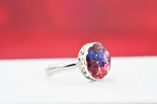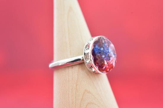 ご自身で若干広げていただくことのできるタイプの指輪となりますので、