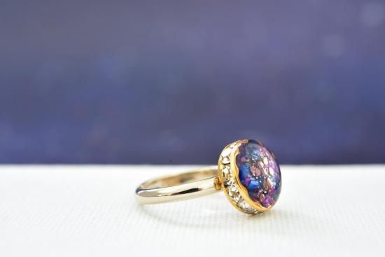 ご自身で若干広げていただくことのできるタイプの指輪となりますので、