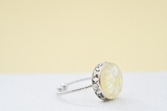 丸い形と色合いから、満月を思わせるアクセサリーに。