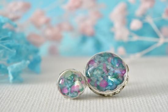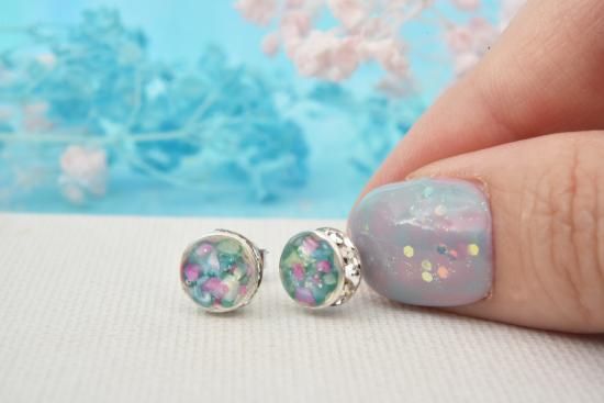 今までは割と単色のピアスを購入していましまが、今回は複数色が混じっていてるものに挑戦。品よく色が纏っていて、単色のものよりも良いアクセントになりました。アレルギー対応でチタンを選択しましたが、問題なく着用できました。