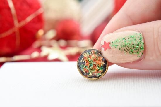 赤・緑・白を織り交ぜた上に、ゴールドの箔を散らしています。