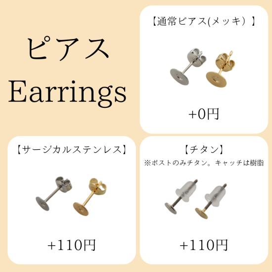 表記金額はピアス(メッキ加工)を注文される場合の金額となっております。