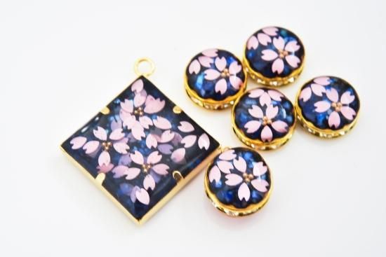 【素材】メッキ加工金属、カットガラス、カラーシェル、レジン等