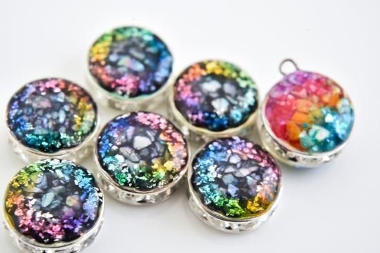 使った着色レジンはピンク、イエロー、グリーン、ブルーの4色で。