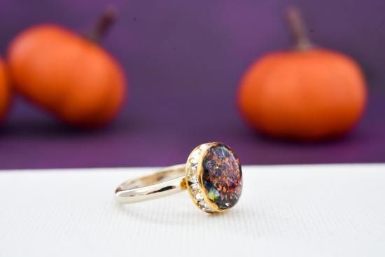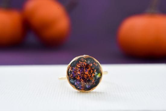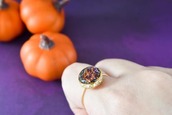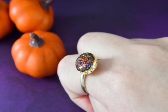 橙と紫2色のハロウィンカラーの箔を重ね、