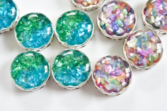 【素材】メッキ加工金属、カットガラス、カラーシェル、レジン等