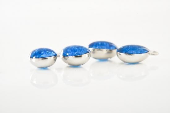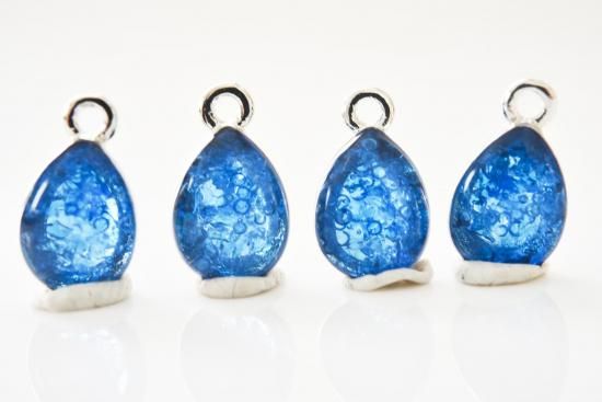 水色の丸粒ガラスや青の細かなガラスを入れ、