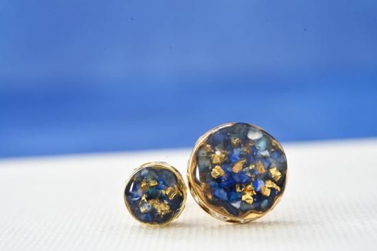 黒や暗め青のシェル、そして金のメタルサンドを織り混ぜ、