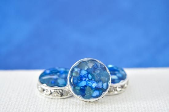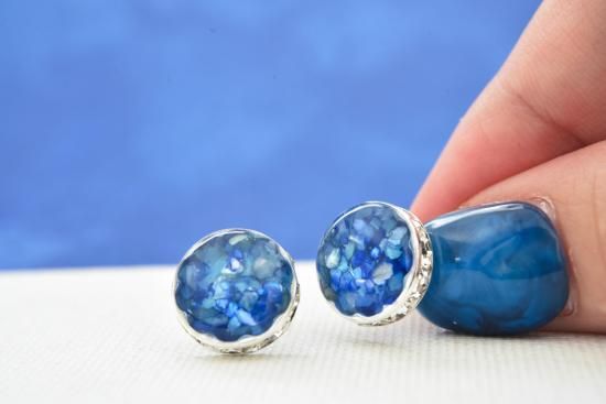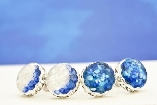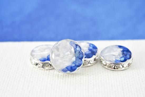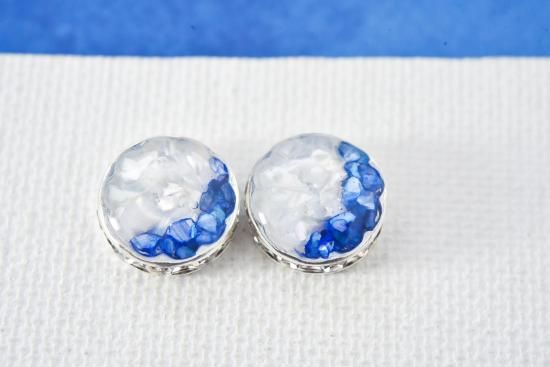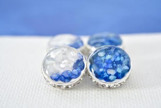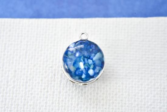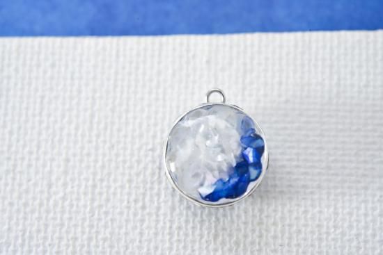 シェルの上から青の着色レジンを全体に重ねているのでわかりにくいのですけれど、ベースのシェルには青や淡い空色、そしてグレーのシェルを使っていて。そうすることでクレーターっぽく見せるようにしていたので、感じていただけて嬉しいです。