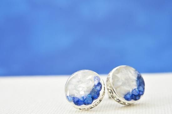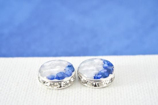 その上に全体的に少し水色寄りの青に染めた着色レジンを重ねています。