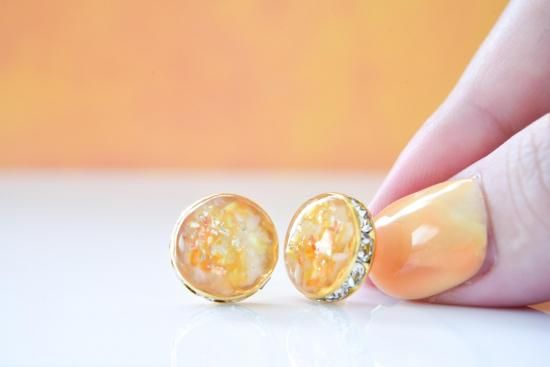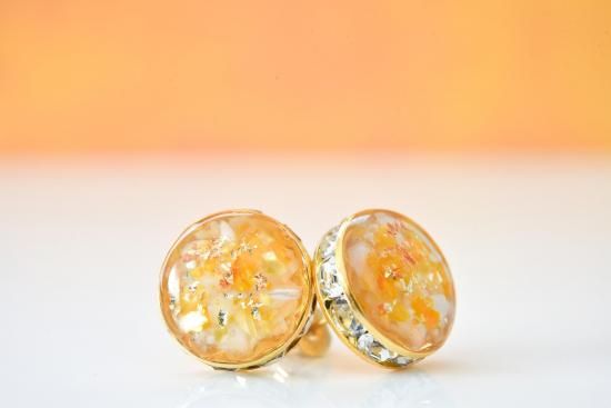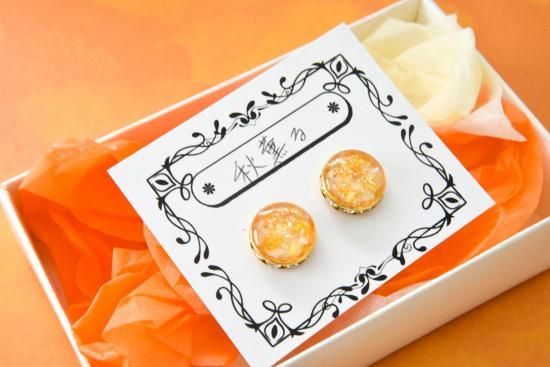 金木犀の色のシェルや色箔、そして淡い金箔を重ねることで、
