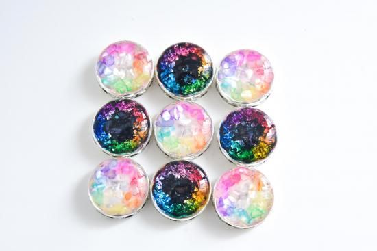 【素材】メッキ加工金属、カットガラス、カラーシェル、レジン等