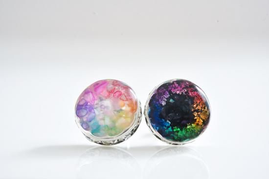 箔とレジンが合わさる上、着色レジン同士の混ざり具合もあり、