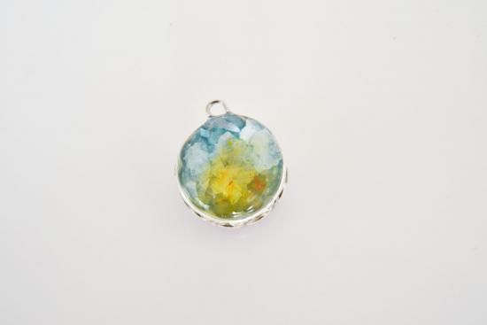 さらに空色や黄色、橙に染めた着色レジンをふんわりと重ねて作っています。