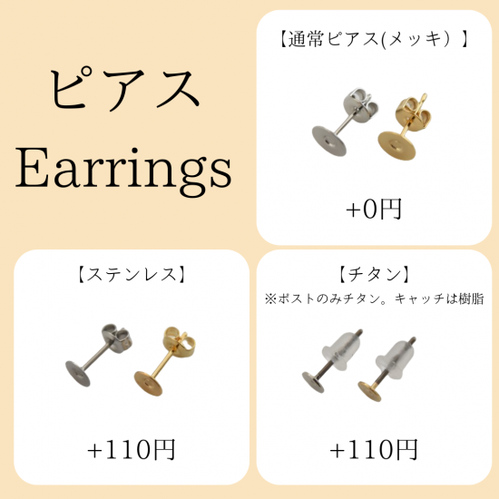 表記金額はピアス(メッキ加工)を注文される場合の金額となっております。
