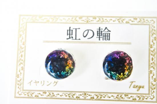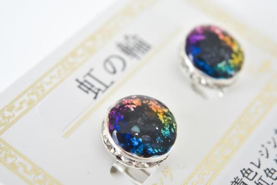 さらに着色レジンを重ねて作った虹色グラデーションの輪。