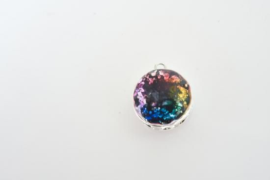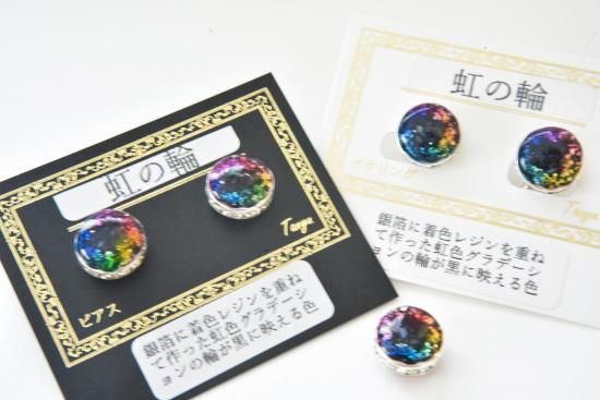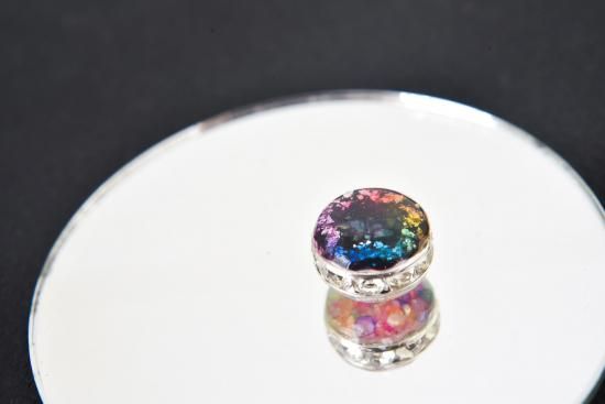 さらに着色レジンを重ねて作った虹色グラデーションの輪。
