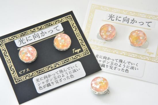 光に向かって飛んでいくシャボン玉のように淡い色が織り交ざった色です。