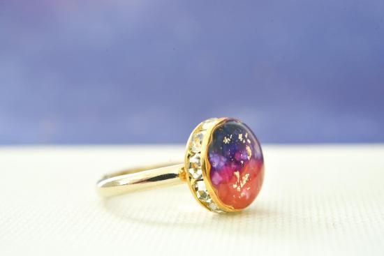 着色レジンの重ね具合で色の雰囲気が変わるので、