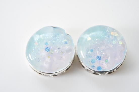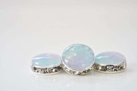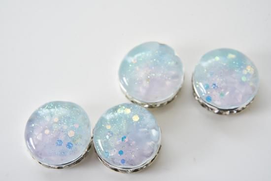 白をベースにミルキーな感じの着色レジン3色を(紫・青・緑)ふんわり重ね、