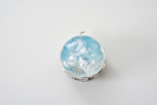 ちょっとミルキーな感じの青空色に染めた着色レジンを